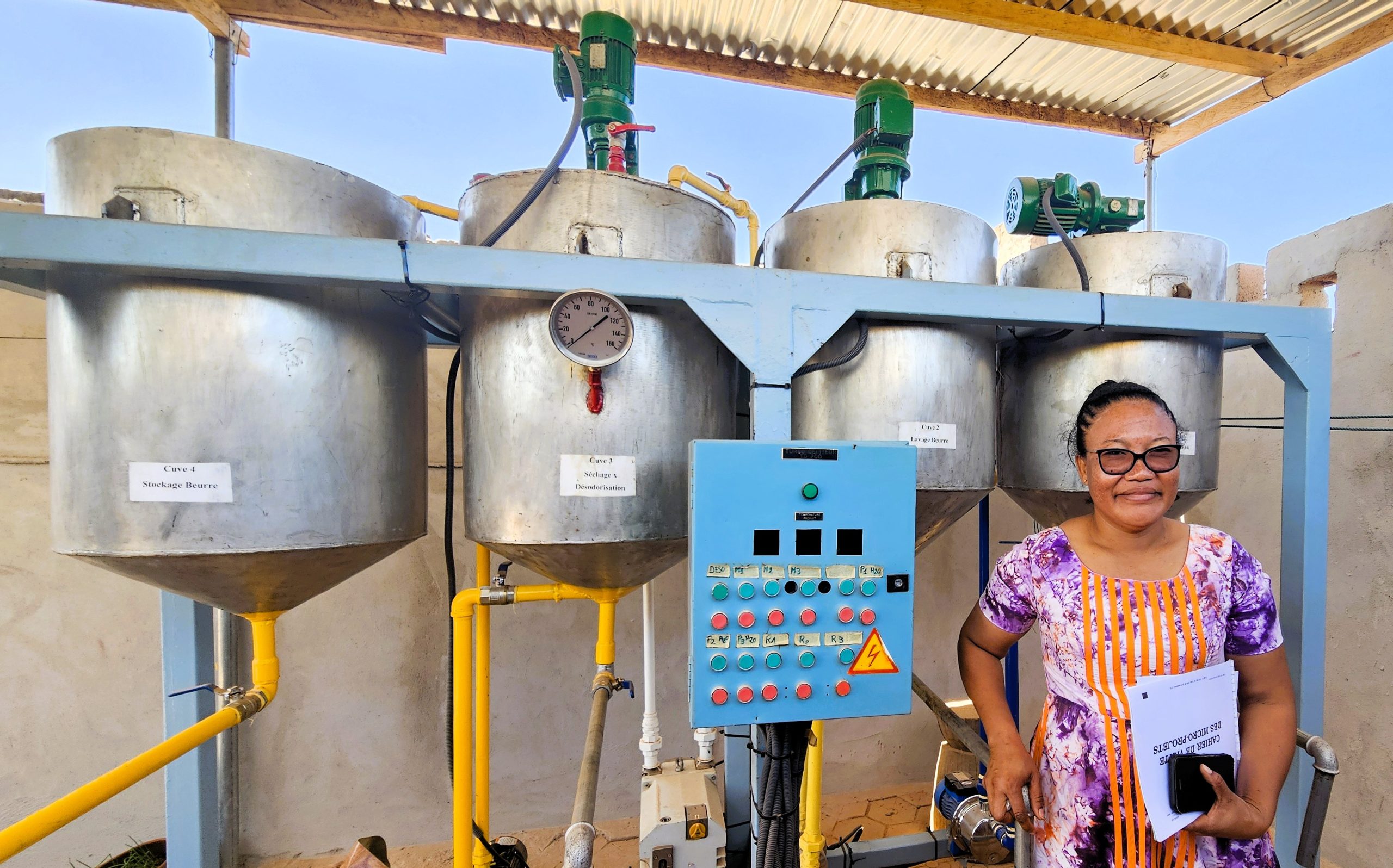 Ce soutien financier, accompagné d’un appui technique (formations), devient un véritable catalyseur. L’acquisition de moulins, d’un tricycle pour la distribution, d’une décortiqueuse et d’un broyeur marque le passage de l’artisanat à une structure formalisée. FACOUSMA se modernise : une mini-raffinerie locale, la rénovation du site et la construction d’un hangar peuvent s’observer.